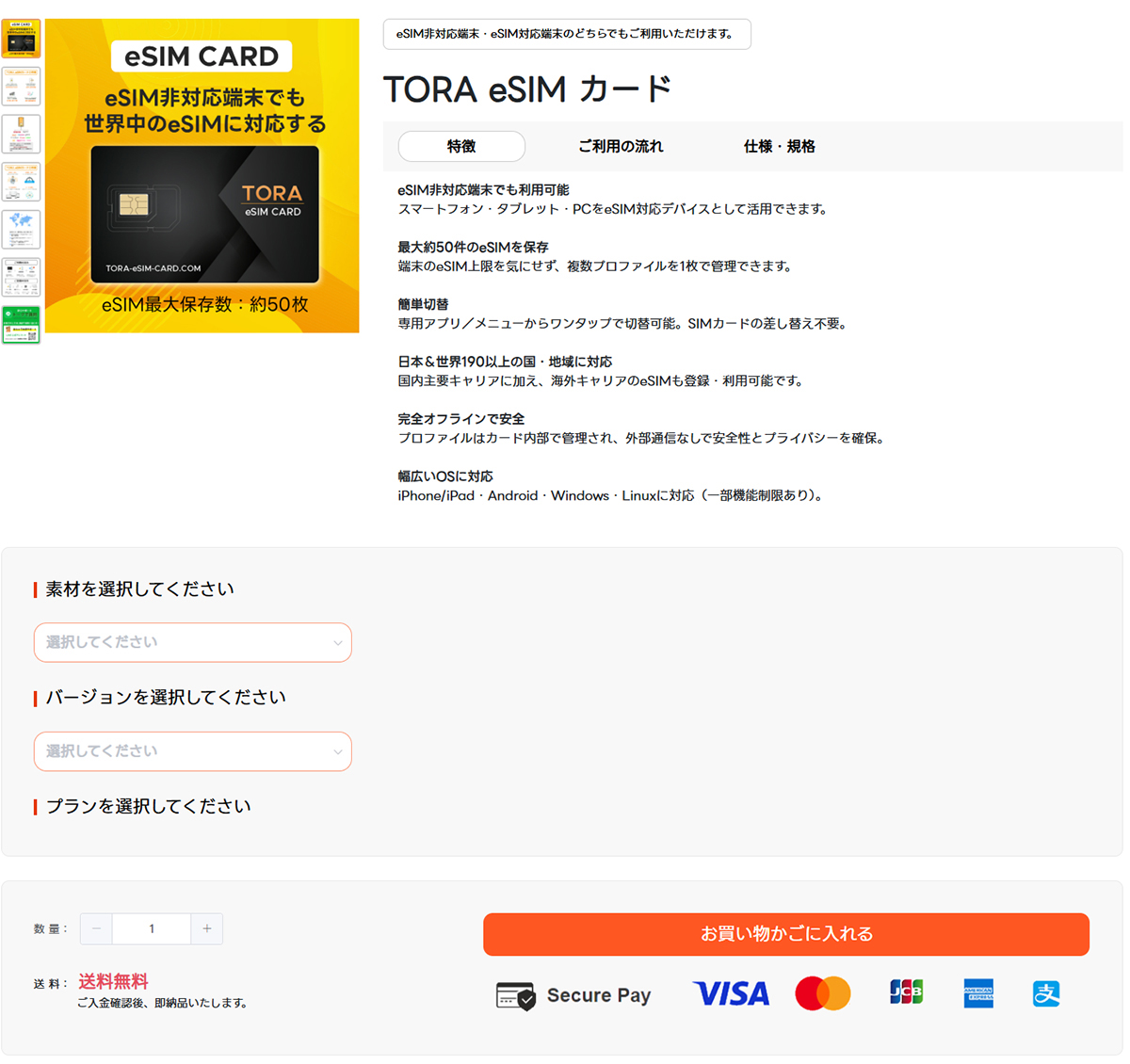 TORA eSIM CARD は 24時間いつでもオンライン注文が可能です。